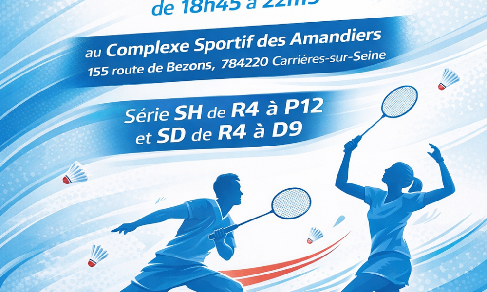 La section Badminton de Carrières-sur-Seine organise son premier stage de la saison 2023/2024, du 23 au 27 Octobre. Public : De...